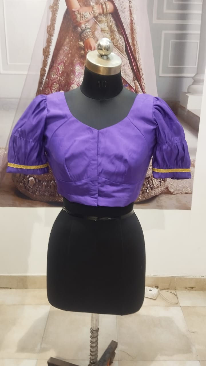 Suta purple embroidered blouse with a sweat heart-neck, short sleeves, and hook