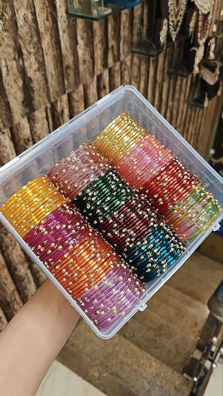 Glass Moti Bangles Combo Box | 12 Dozen 12 Colours Set | Premium Traditional Bri